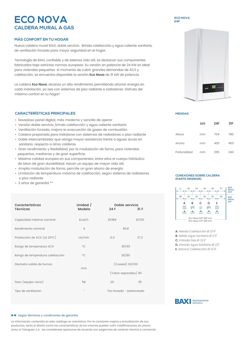 Caldera Mural A Gas Baxi Eco Nova 31 Kw Dual Tiro Forzado