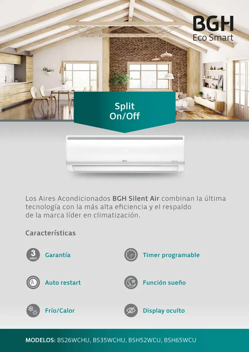 Climatizá tu hogar con el BGH BS52WCHU, un equipo Split frío calor de 5000W de potencia, ideal para mantener la temperatura perfecta durante todo el año. Su diseño moderno y compacto se adapta fácilmente a cualquier ambiente.