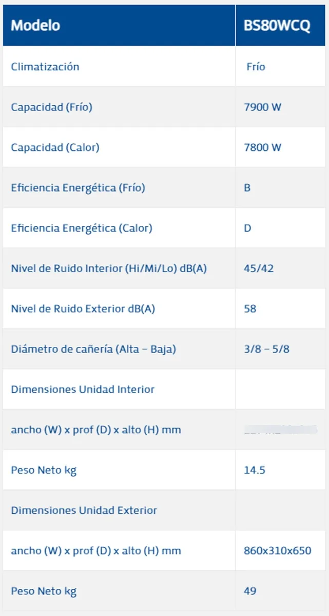 ✅ Potencia Extrema (High Power): Con sus 7900w, tiene la fuerza necesaria para enfriar o calentar superficies de hasta 55/65 m² (dependiendo de la altura y orientación), algo que un split común no puede hacer.
